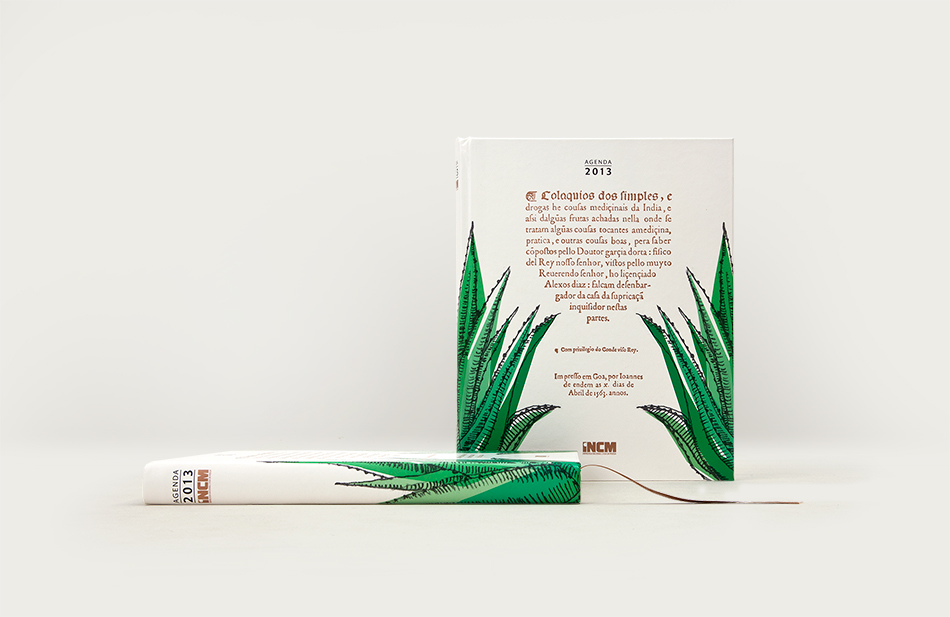 The year 2013 marked the 450th anniversary of the first edition of the book Colóquios dos simples, e drogas e coisas medicinais da Índia written by Garcia de Orta. The Portuguese National Press Mint celebrated the anniversary by publishing a thematic appointment book, designed by FBA.