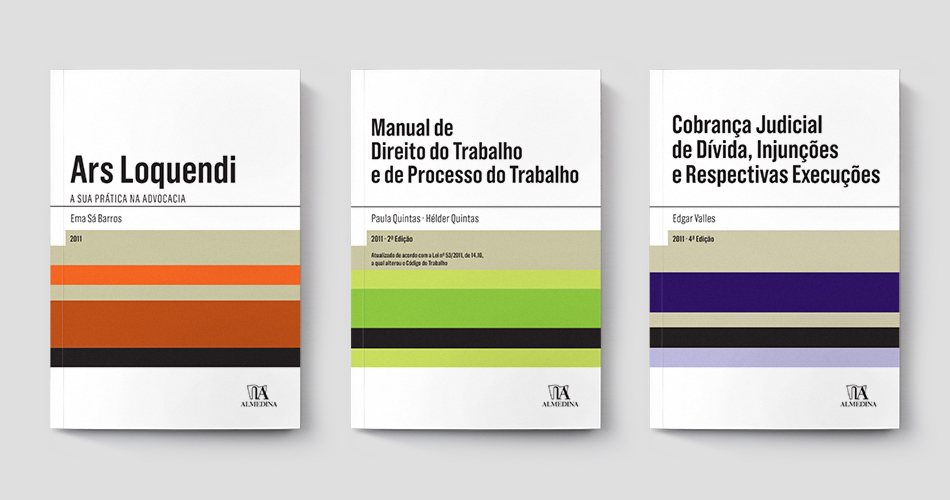 Preserving the legacy of the essence of the editorial identity of Almedina's Law books, FBA. approached this project by reorganising and redesigning the graphic standards for a set of over a dozen book series retaining differences and similarities so that, individually, they were distinguished from each other but, on the whole, shared graphic elements - grid, typography and color palette - thus complementing each other and forming a visual “family”.