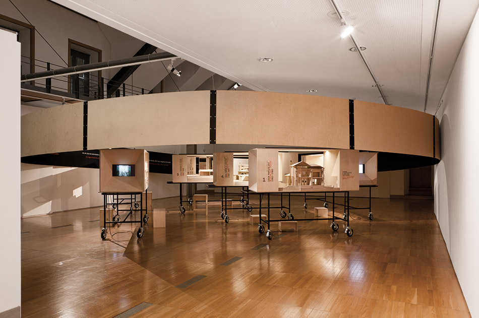 The decision to organize an exhibition of systematic character based on a narrow concept - consisting of models, redrawn drawings, an original sketch of each site and photos by Fernando and Sergio Guerra, all thematically united - was interpreted by the architect Joćo Mendes Ribeiro, responsible for the architecture of the exhibition space.